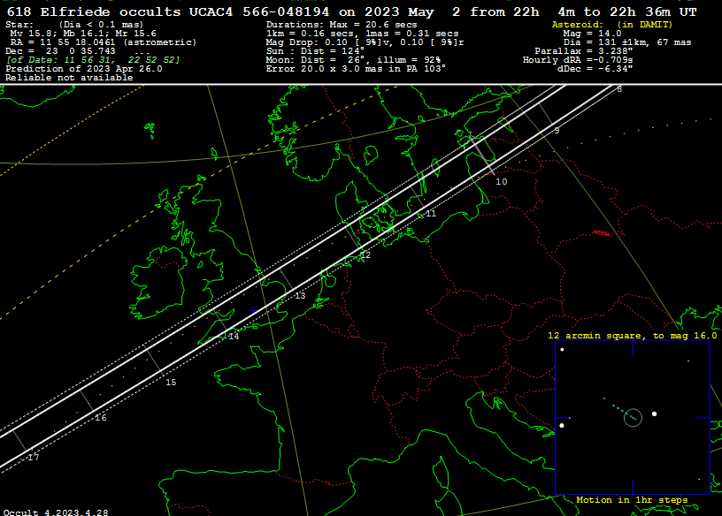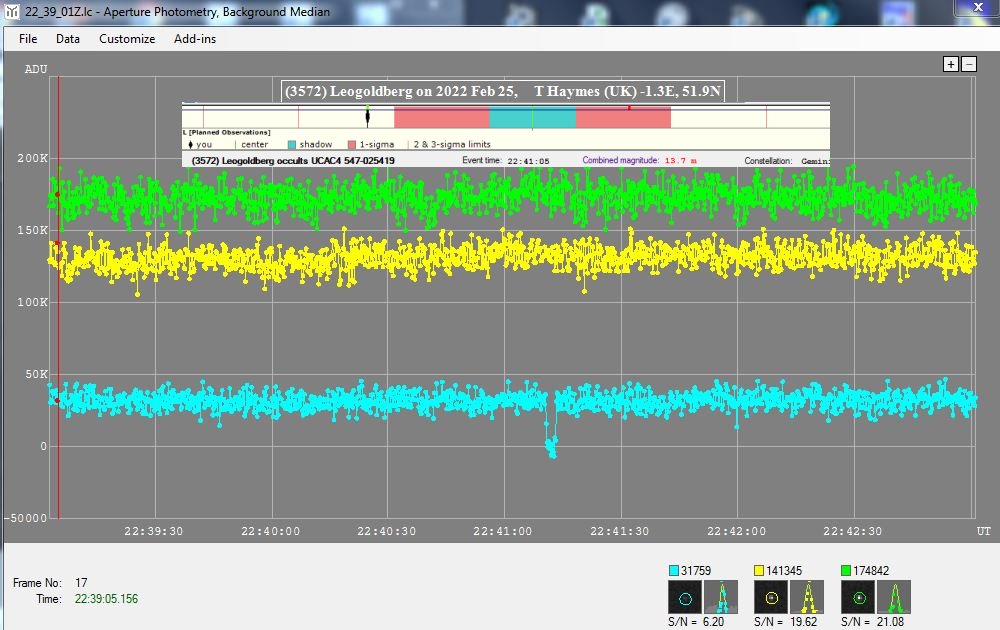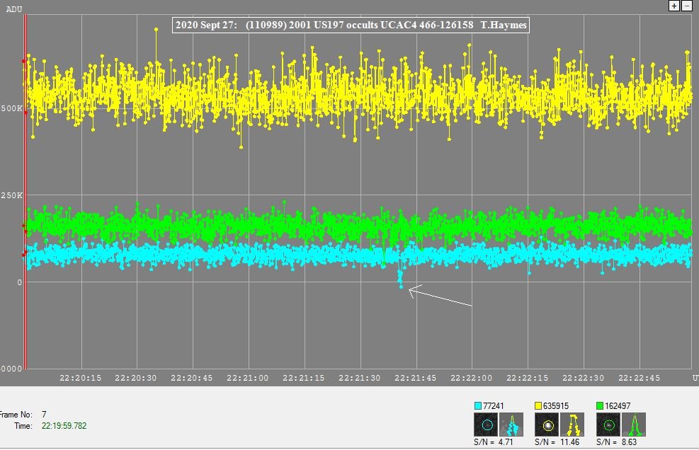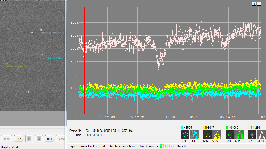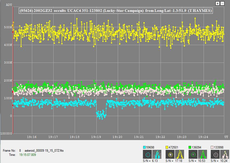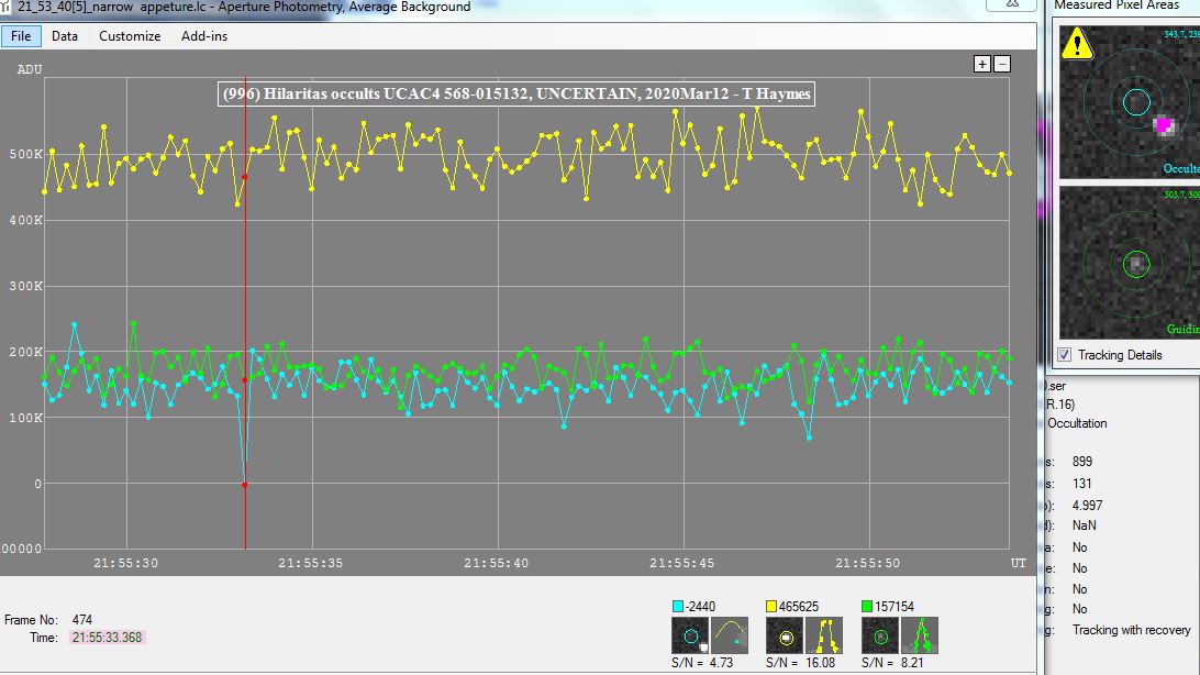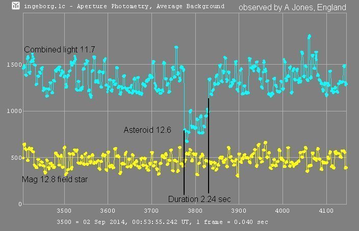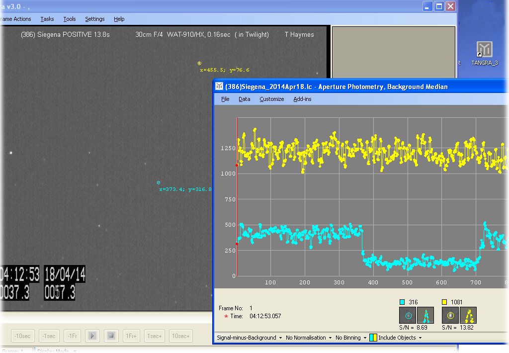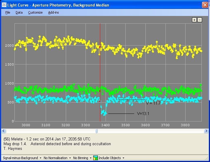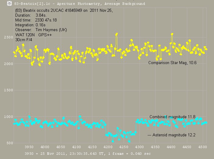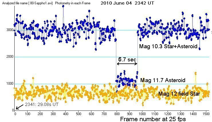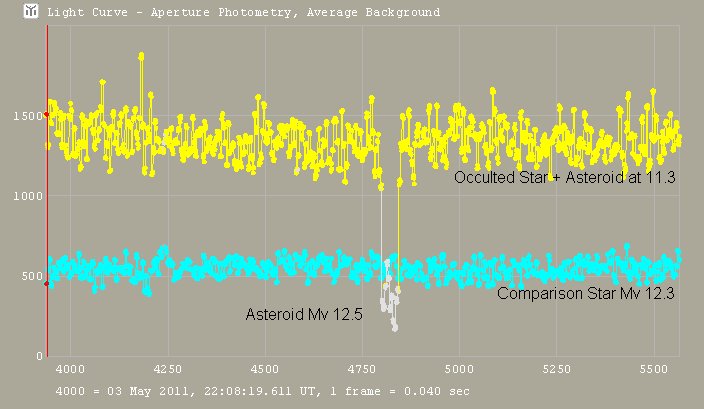 dM = drop in magnitudes, from (Asteroid+Star) to Asteroid. From April