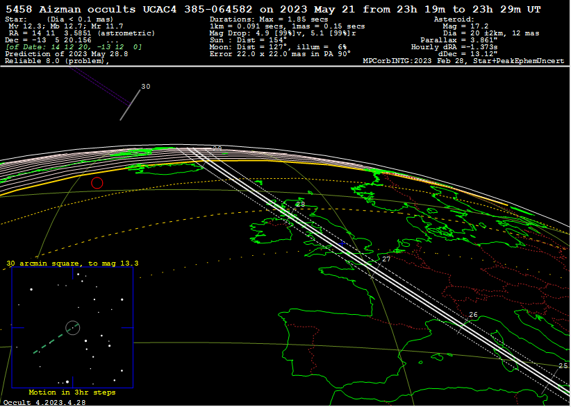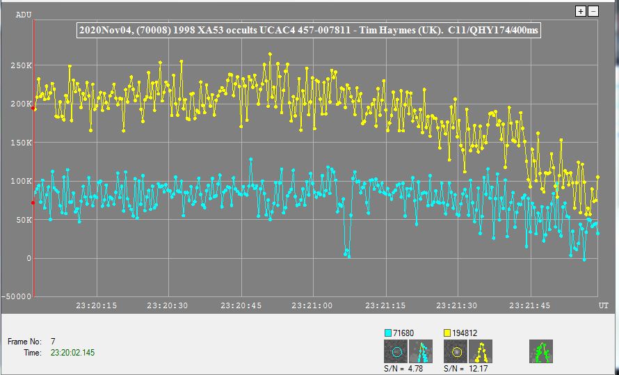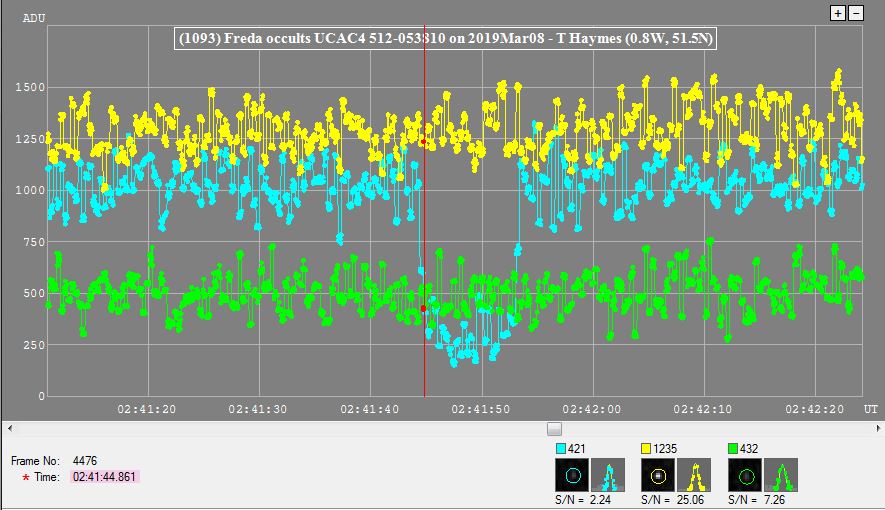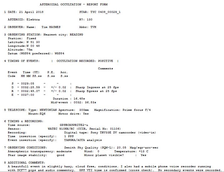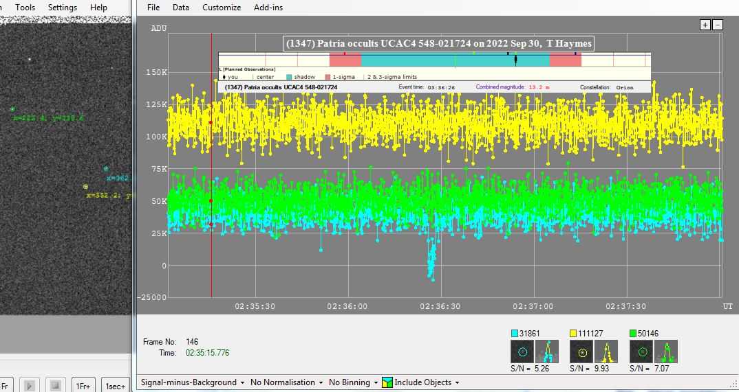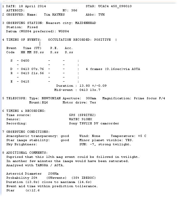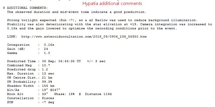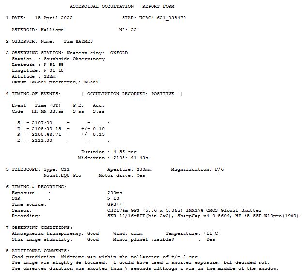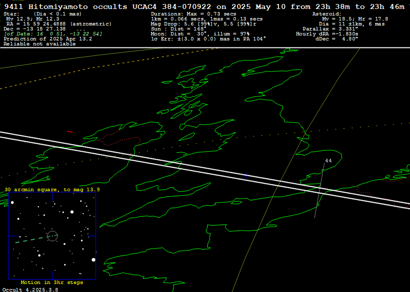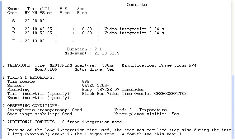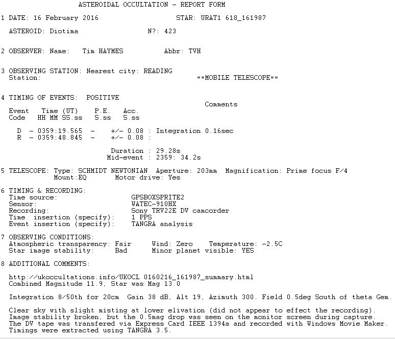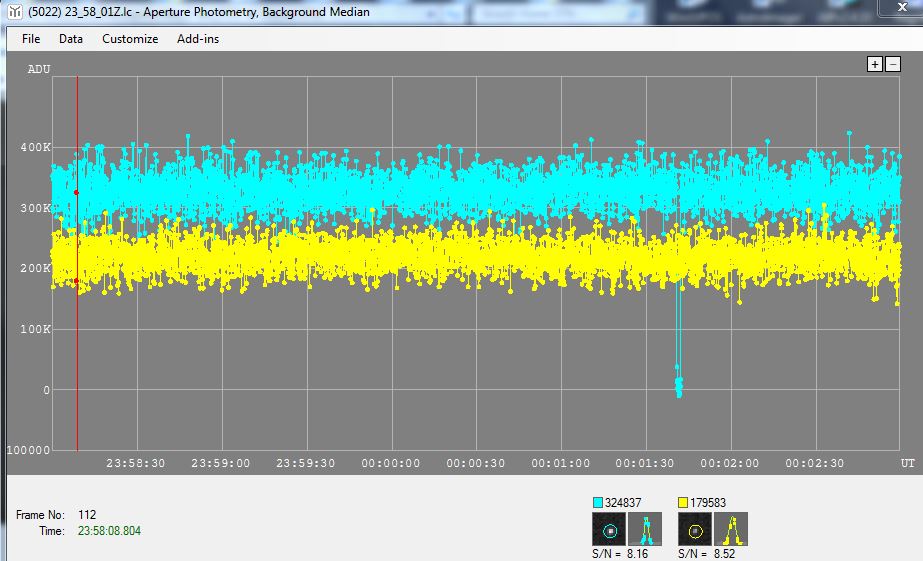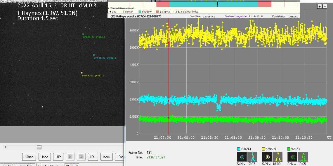 dM = drop in magnitudes, from (Asteroid+Star) to Asteroid. From April