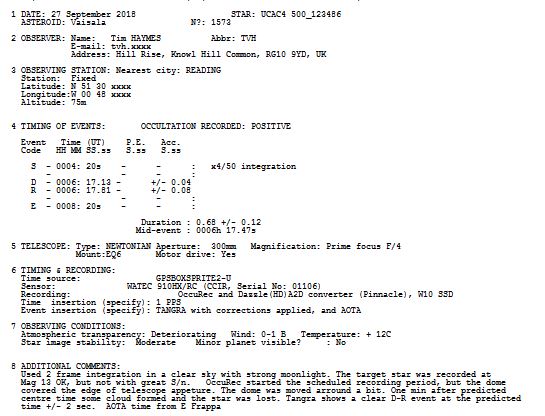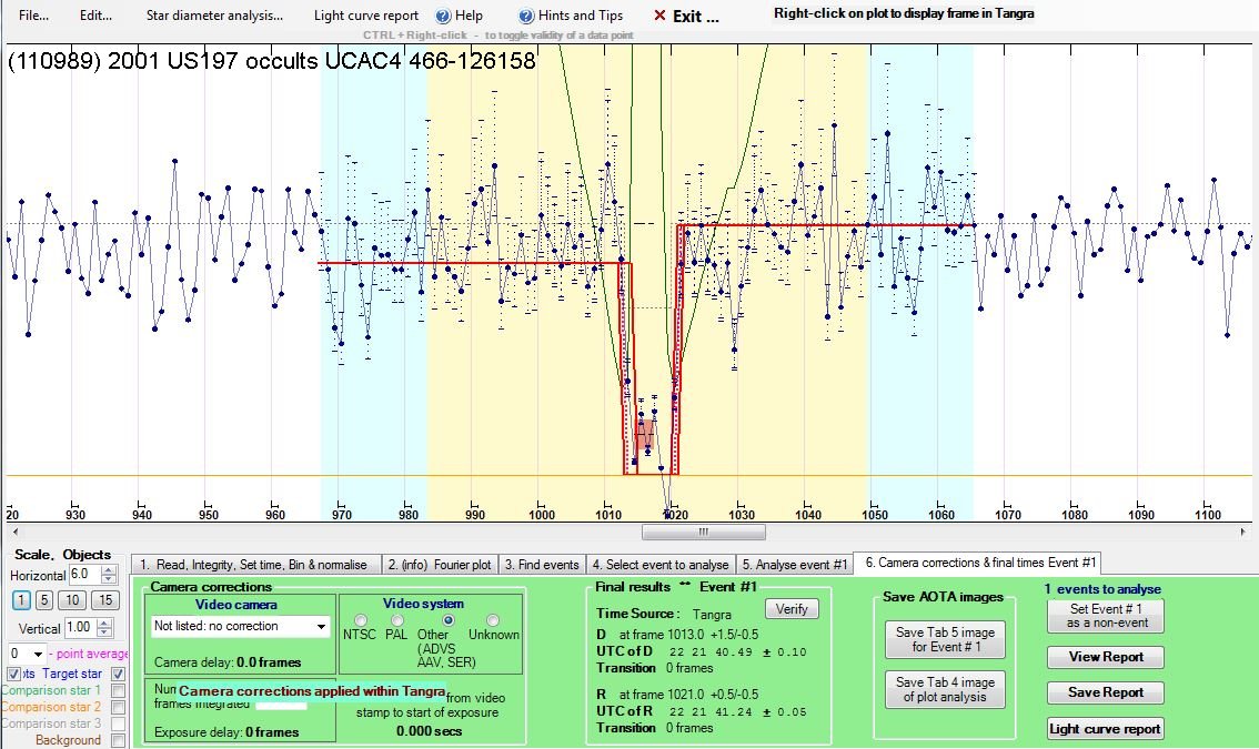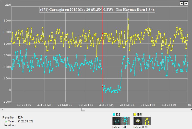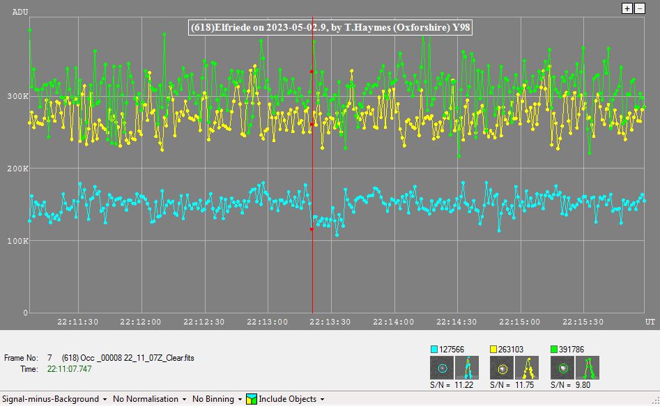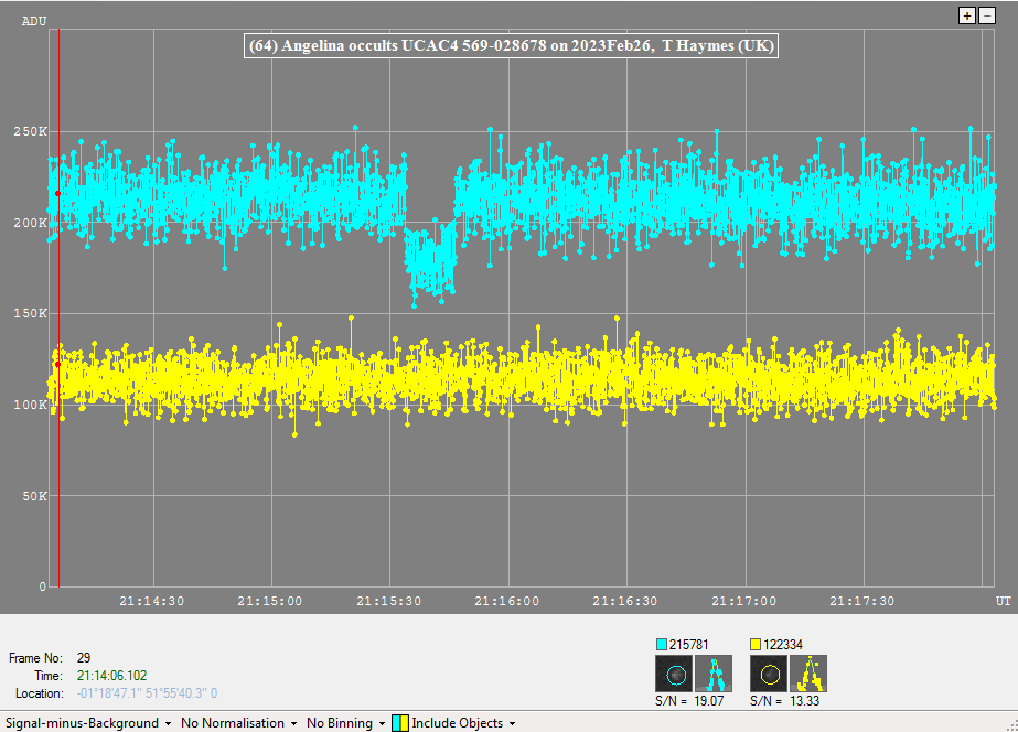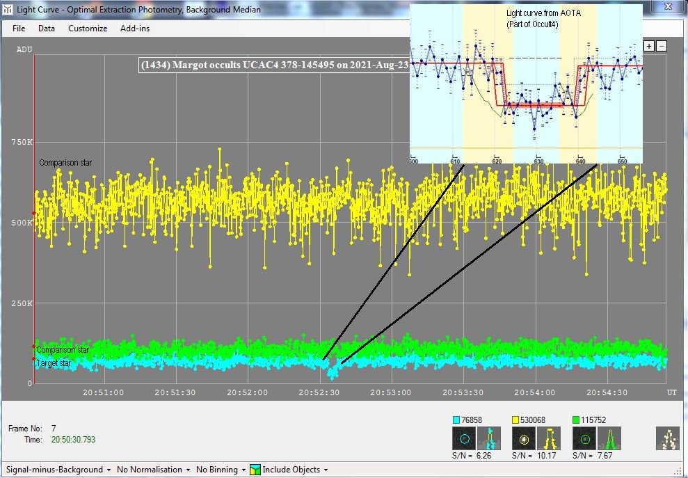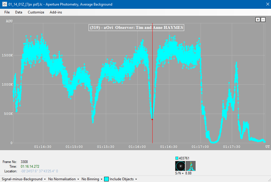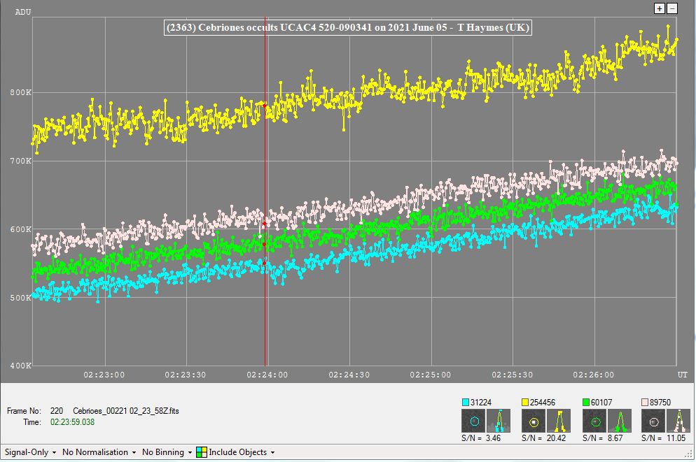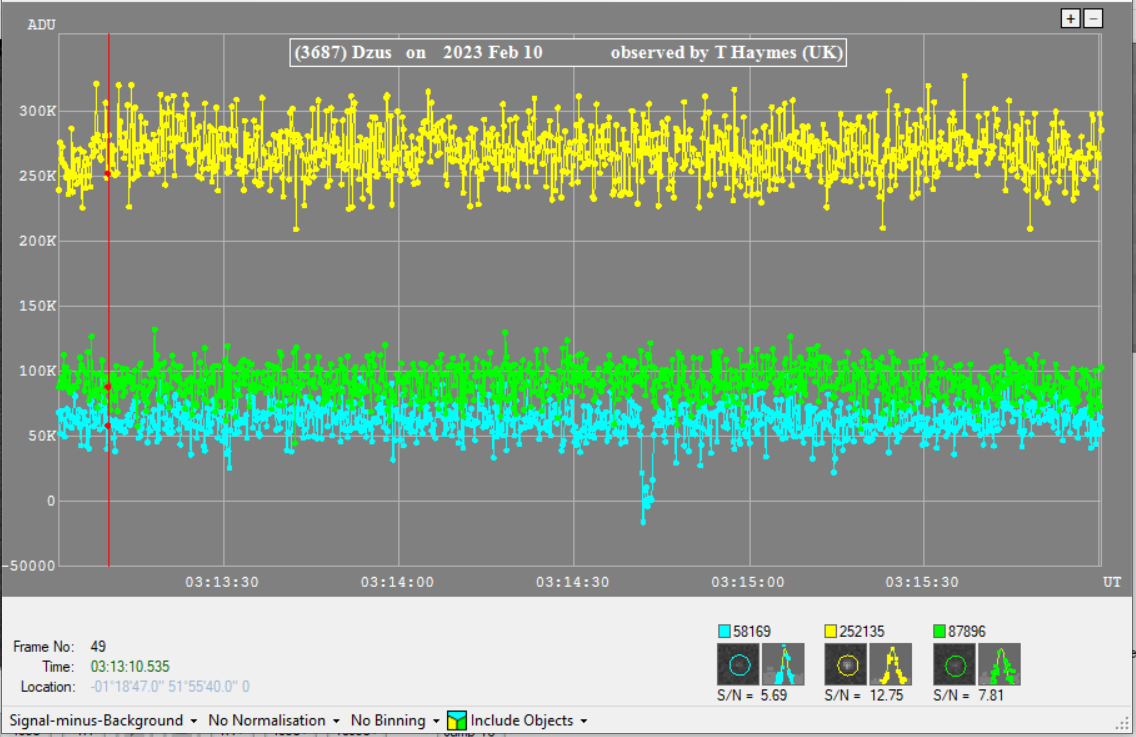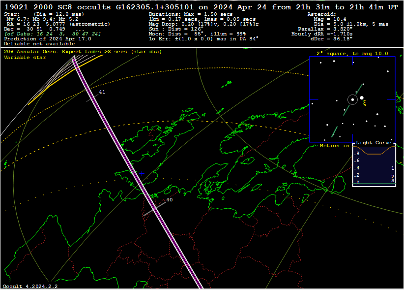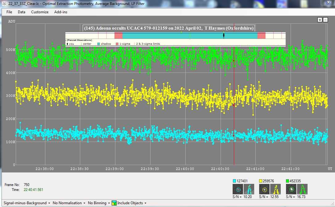 dM = drop in magnitudes, from (Asteroid+Star) to Asteroid. From April