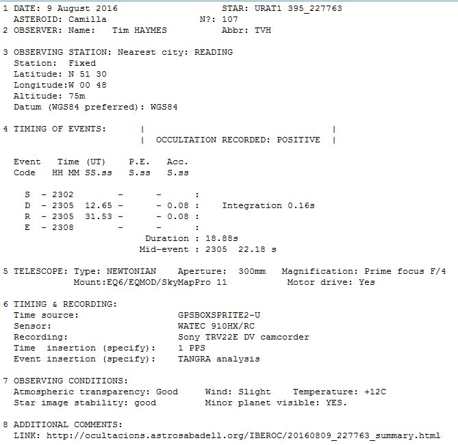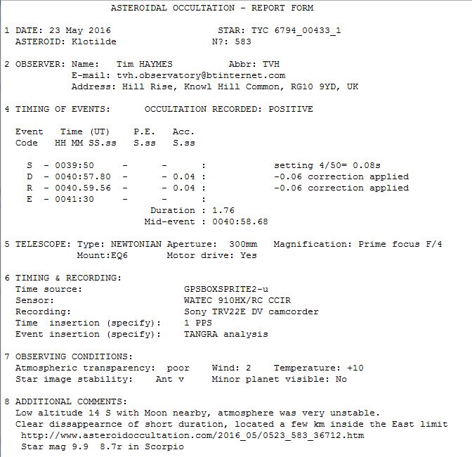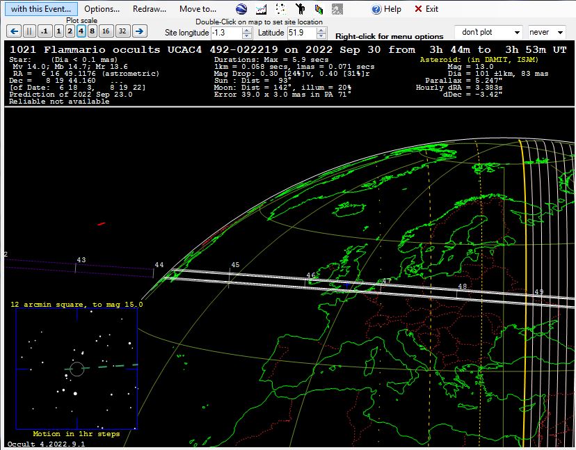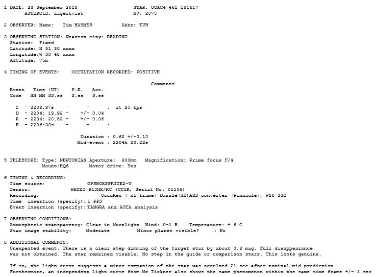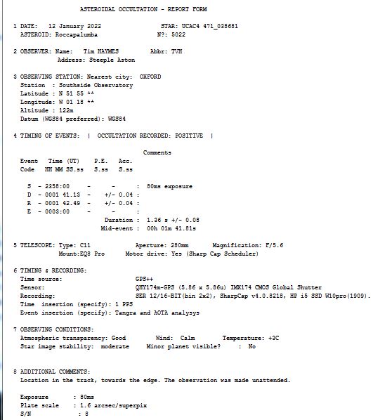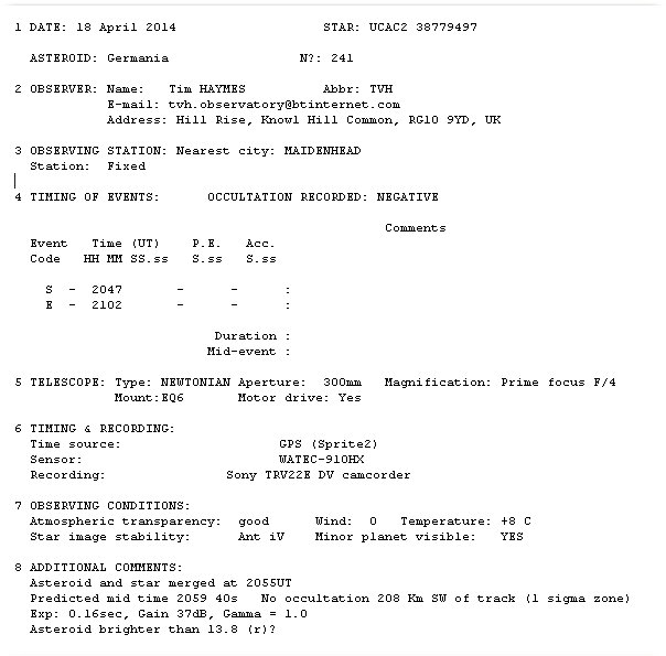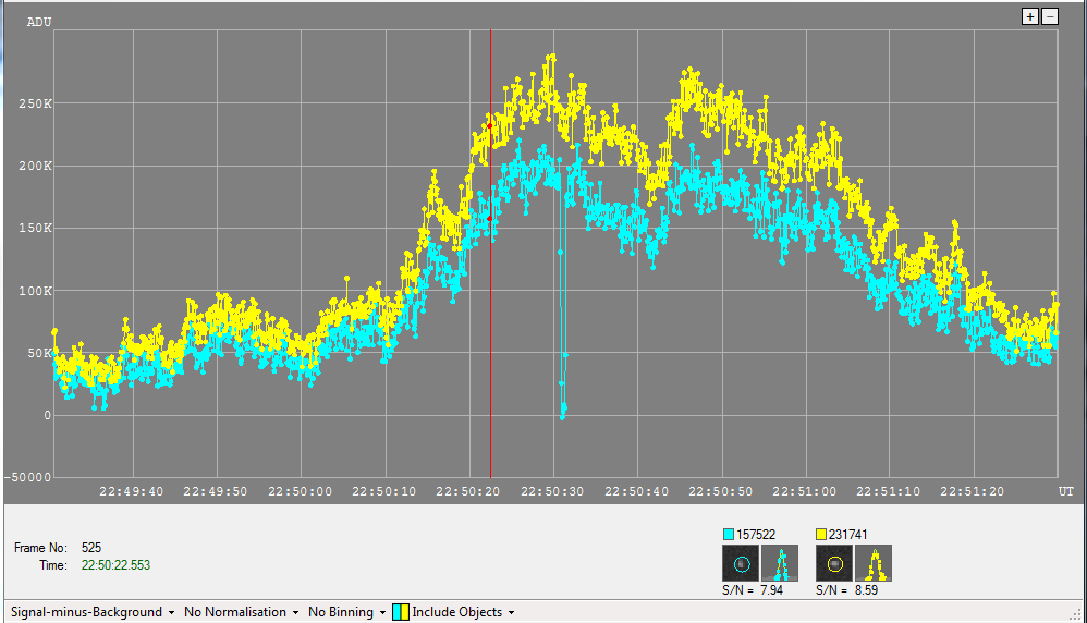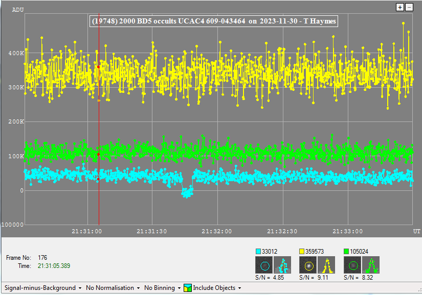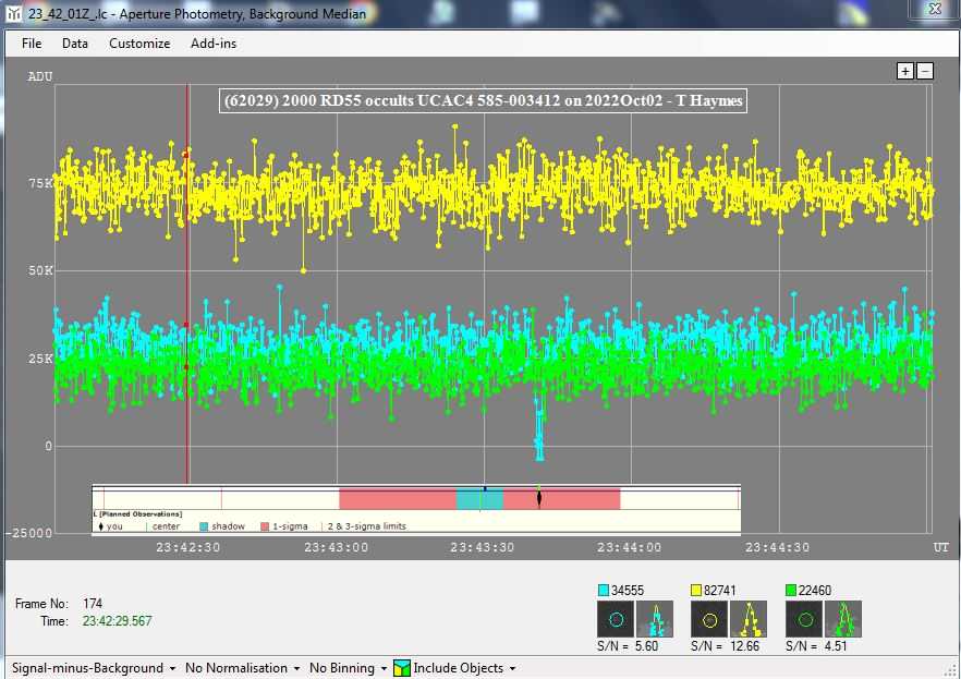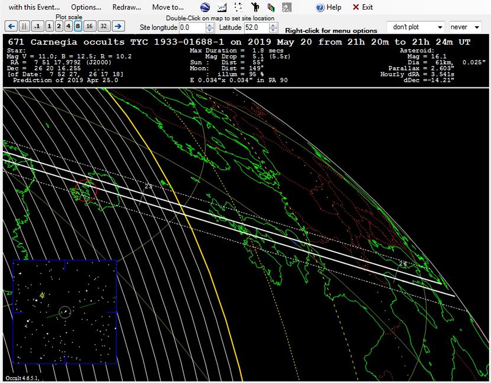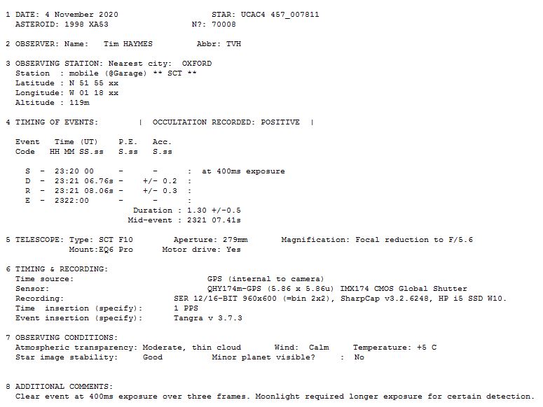 dM = drop in magnitudes, from (Asteroid+Star) to Asteroid. From April