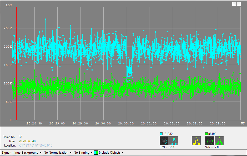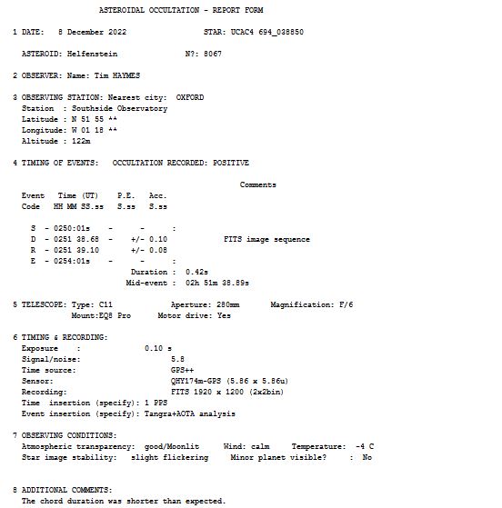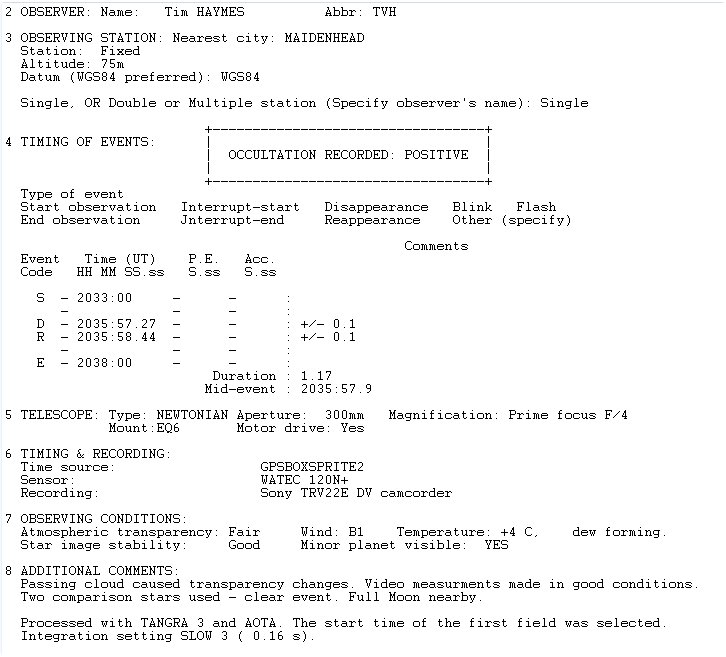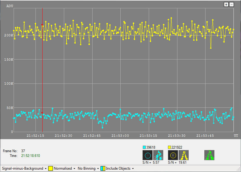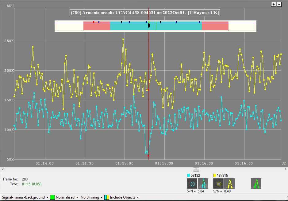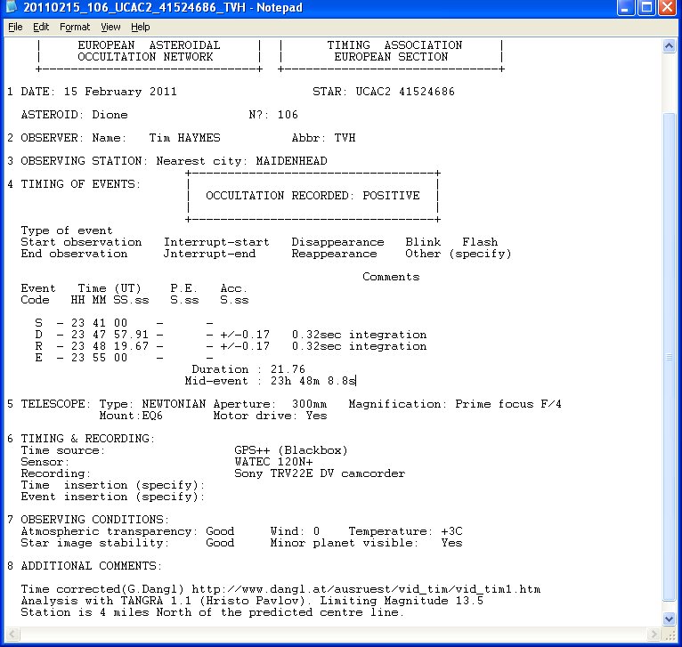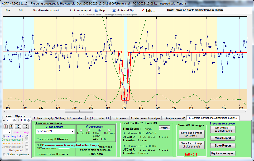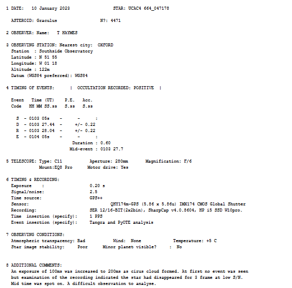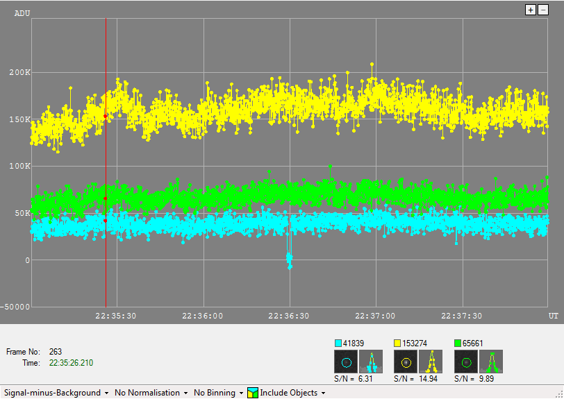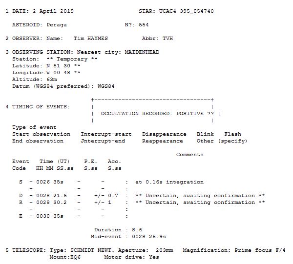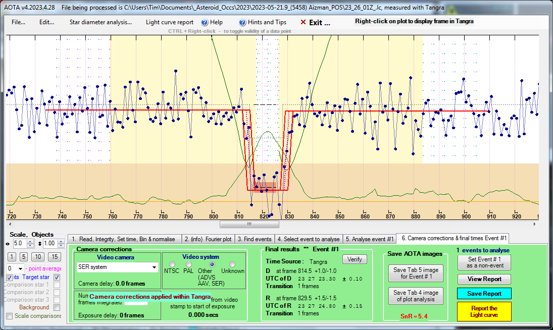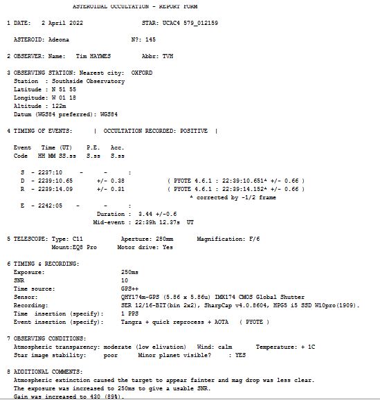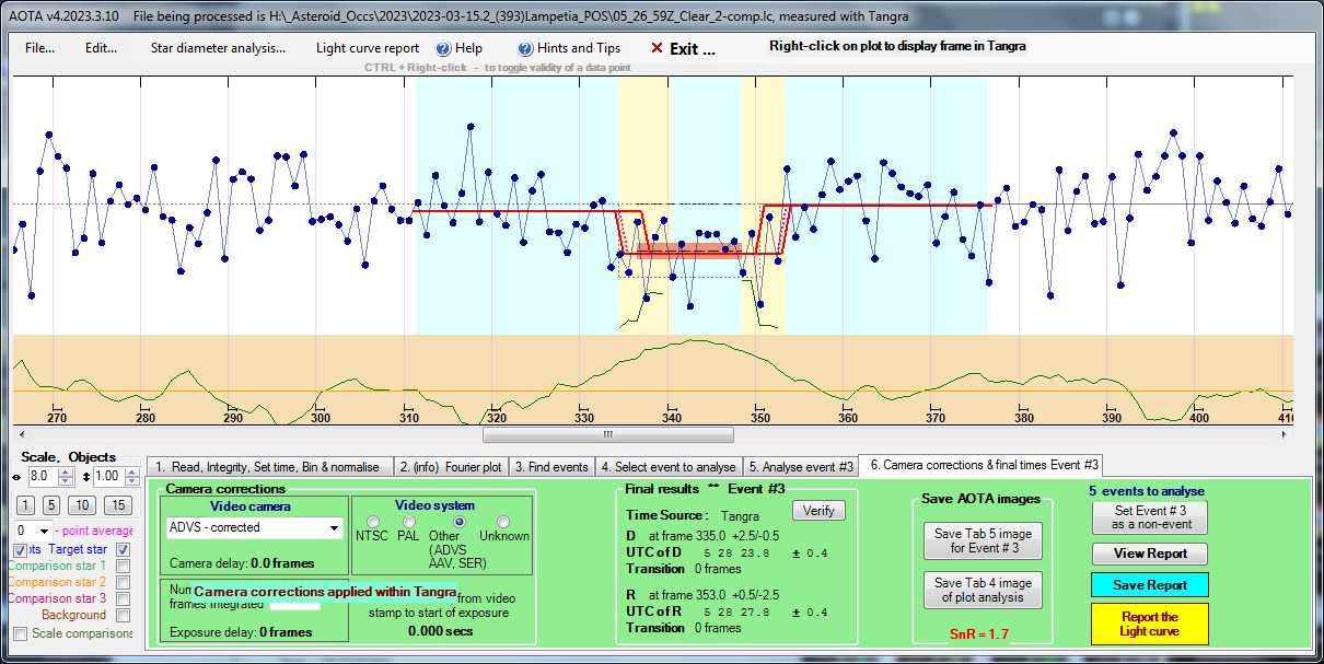 dM = drop in magnitudes, from (Asteroid+Star) to Asteroid. From April