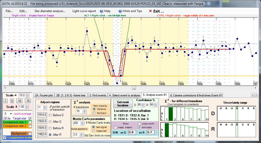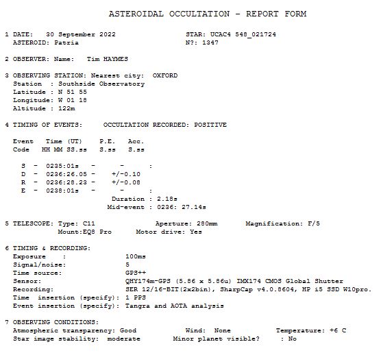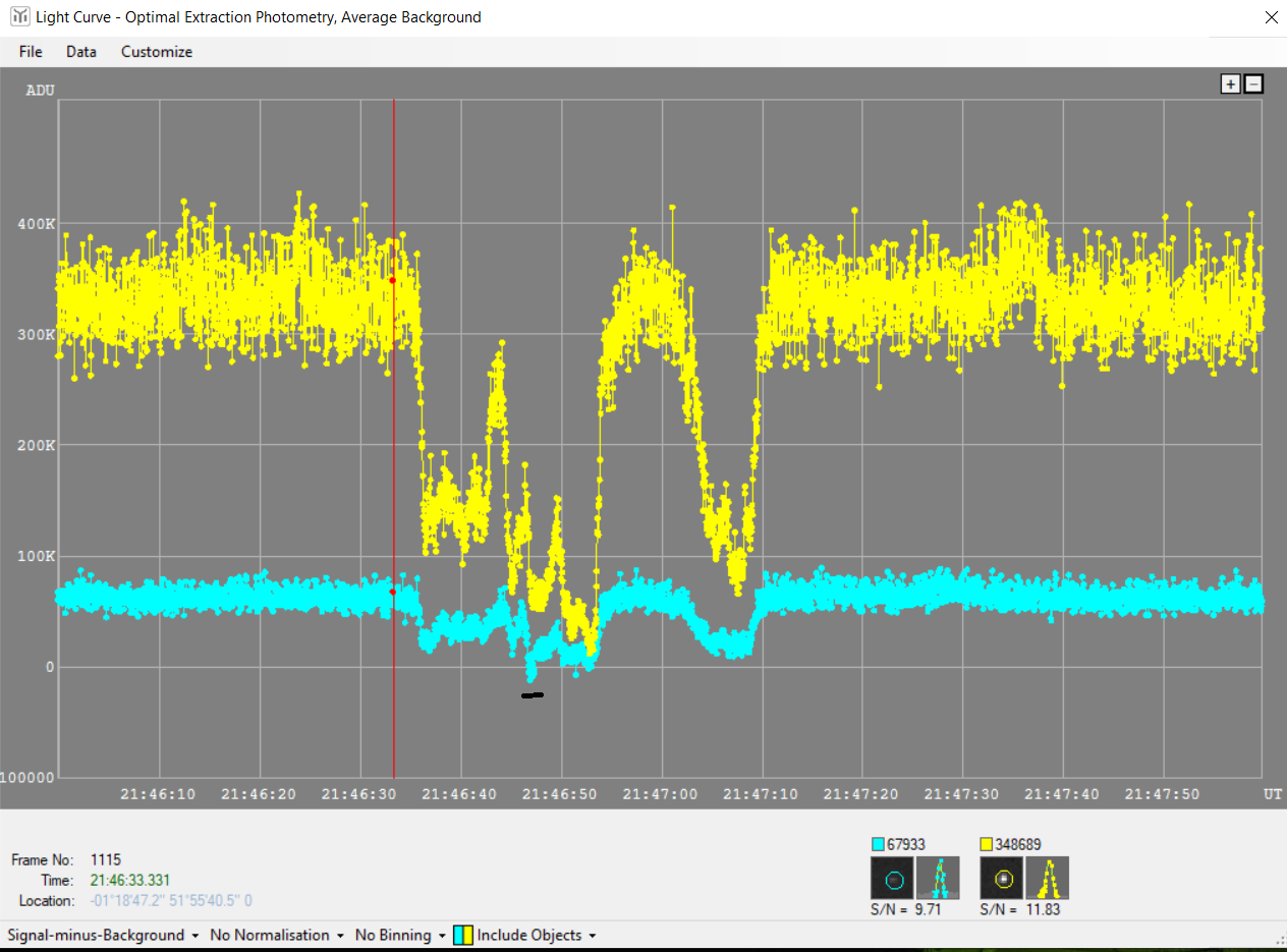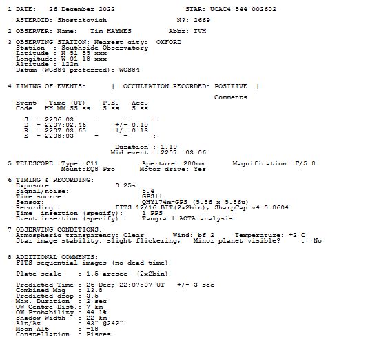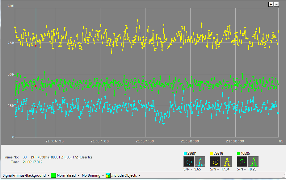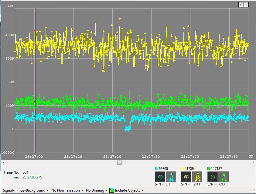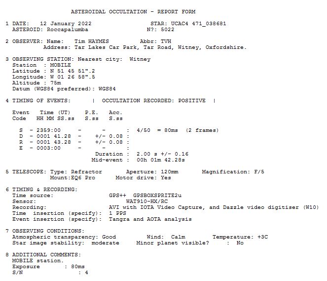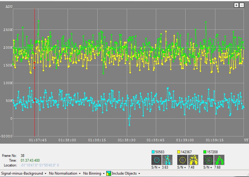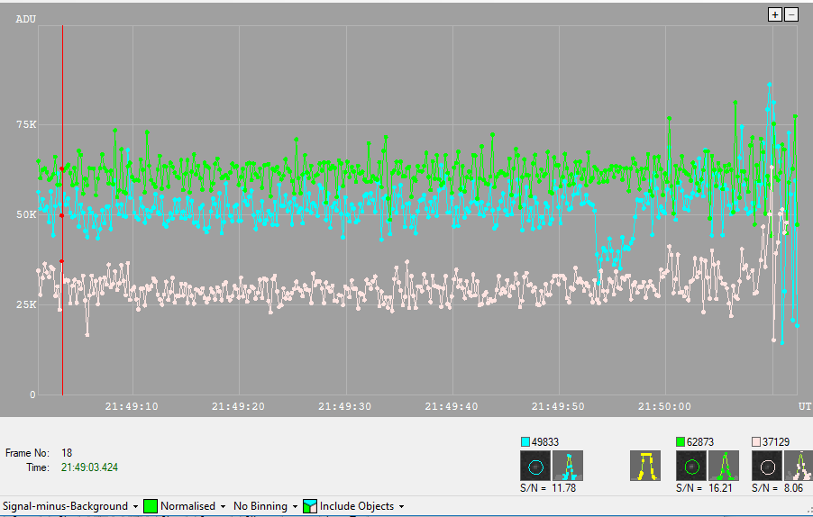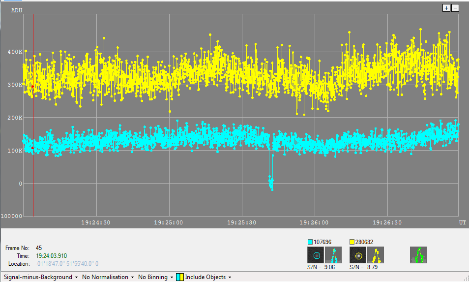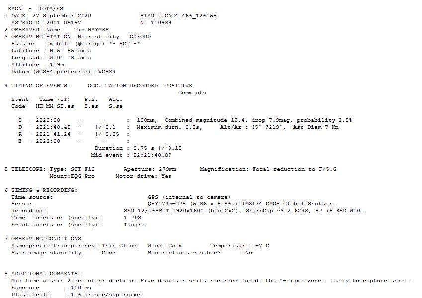 dM = drop in magnitudes, from (Asteroid+Star) to Asteroid. From April