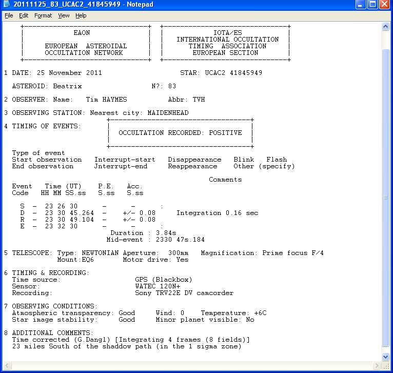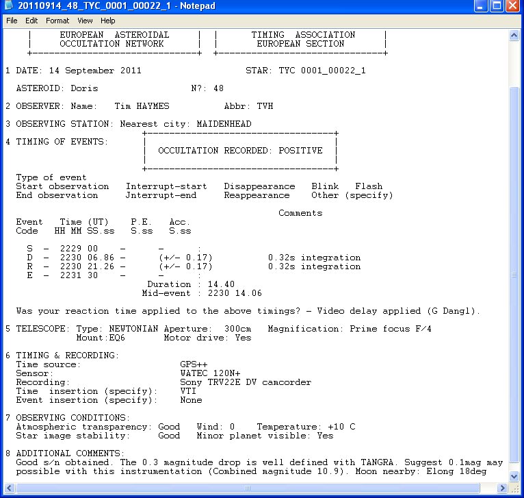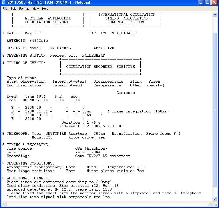 shown in the table. Timings are made to an accuray of 0.1 sec (typically),