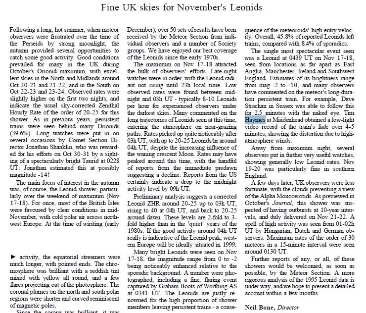 - Peter Jenniskens used my video tape of a bright Leonid persistant