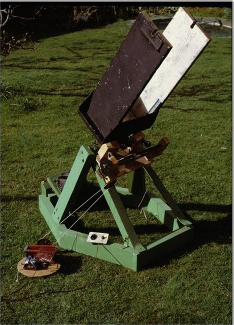 made from materials (mostly wood) in my Dad's workshop. The mounting was a fork,