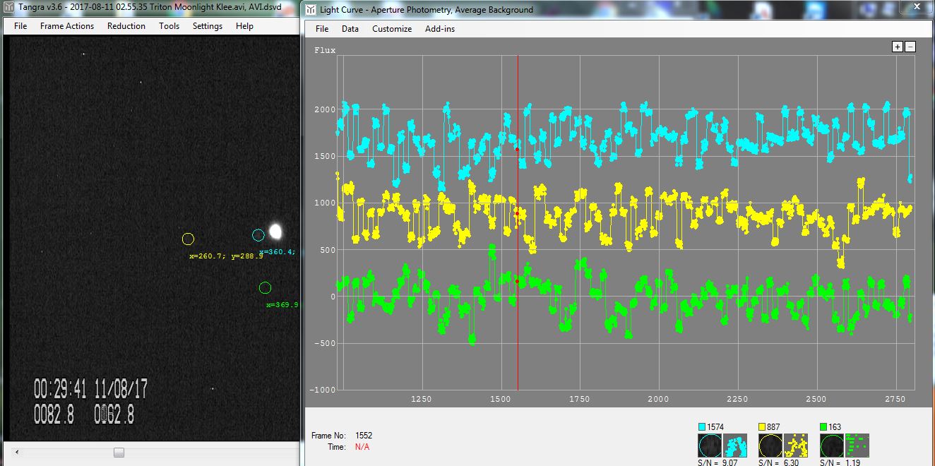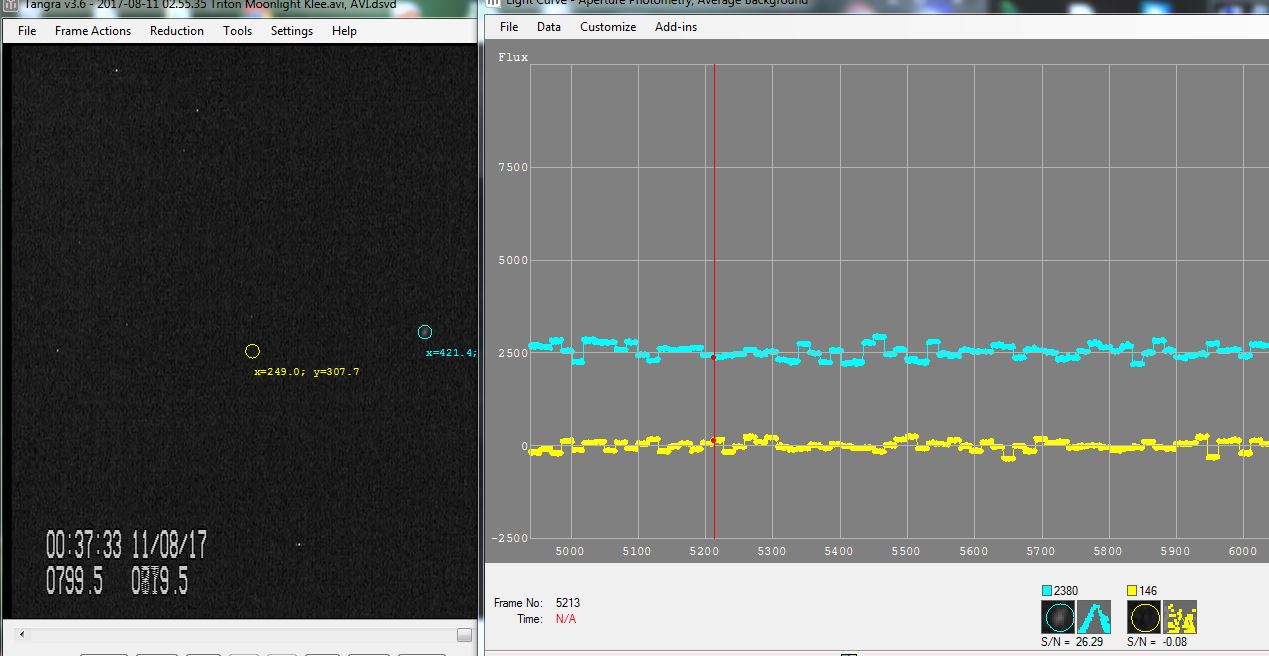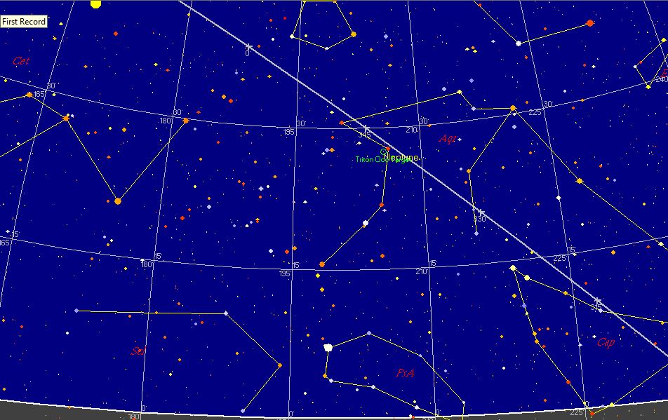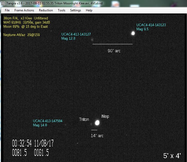 Notes: Triton is magnitude 13.5. The star UCAC4-413-143127 is 1/3rd