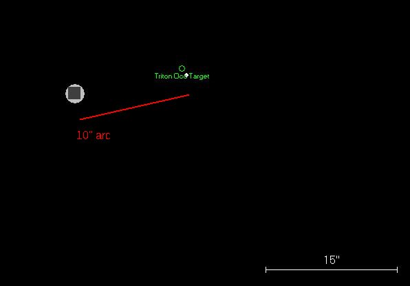 Smaller angular separation from Planet (10-12") due to orbit. Scale