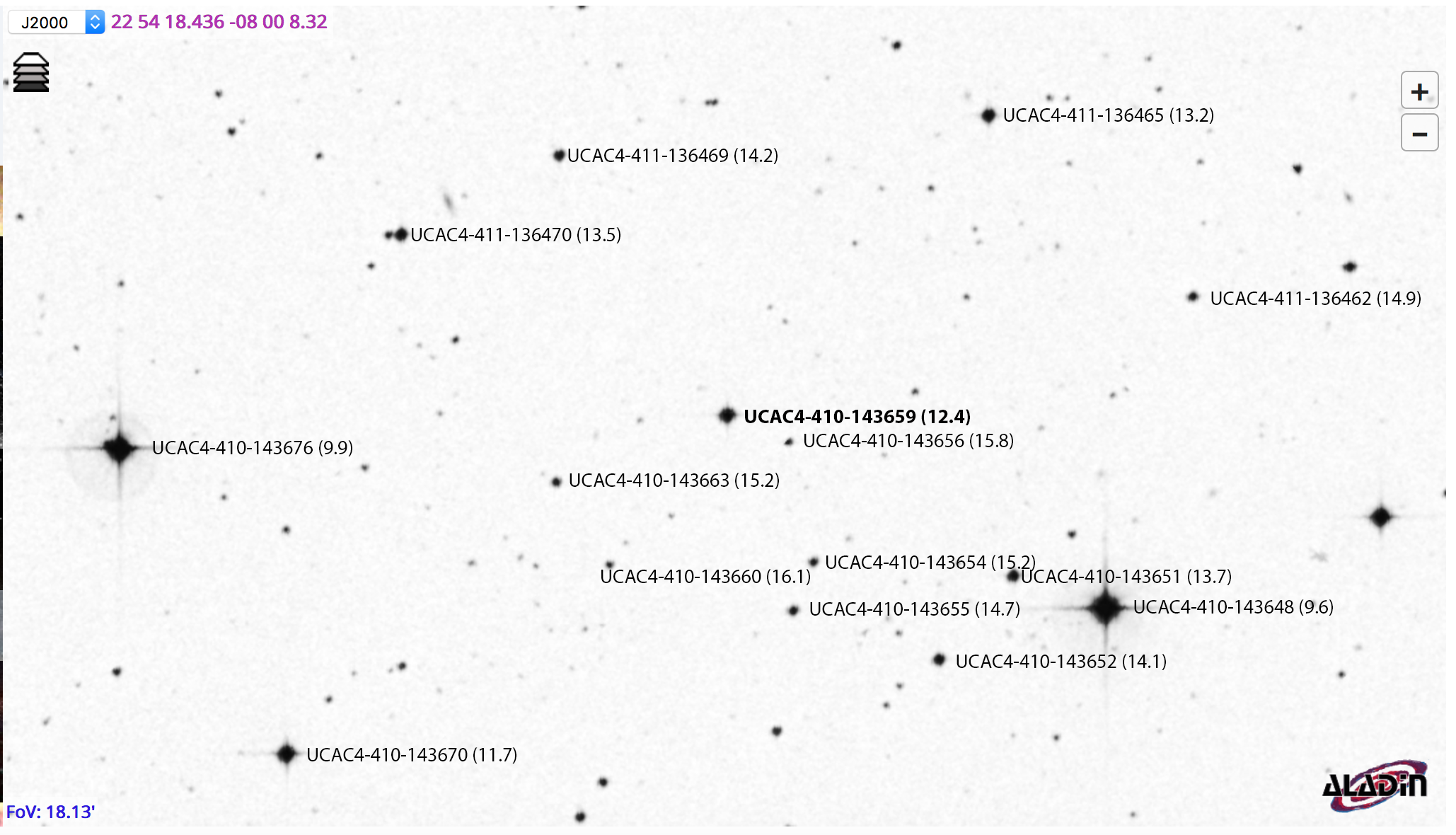 The star UCAC4-410-143670 (11.7 mag) is about optimum for photometric
